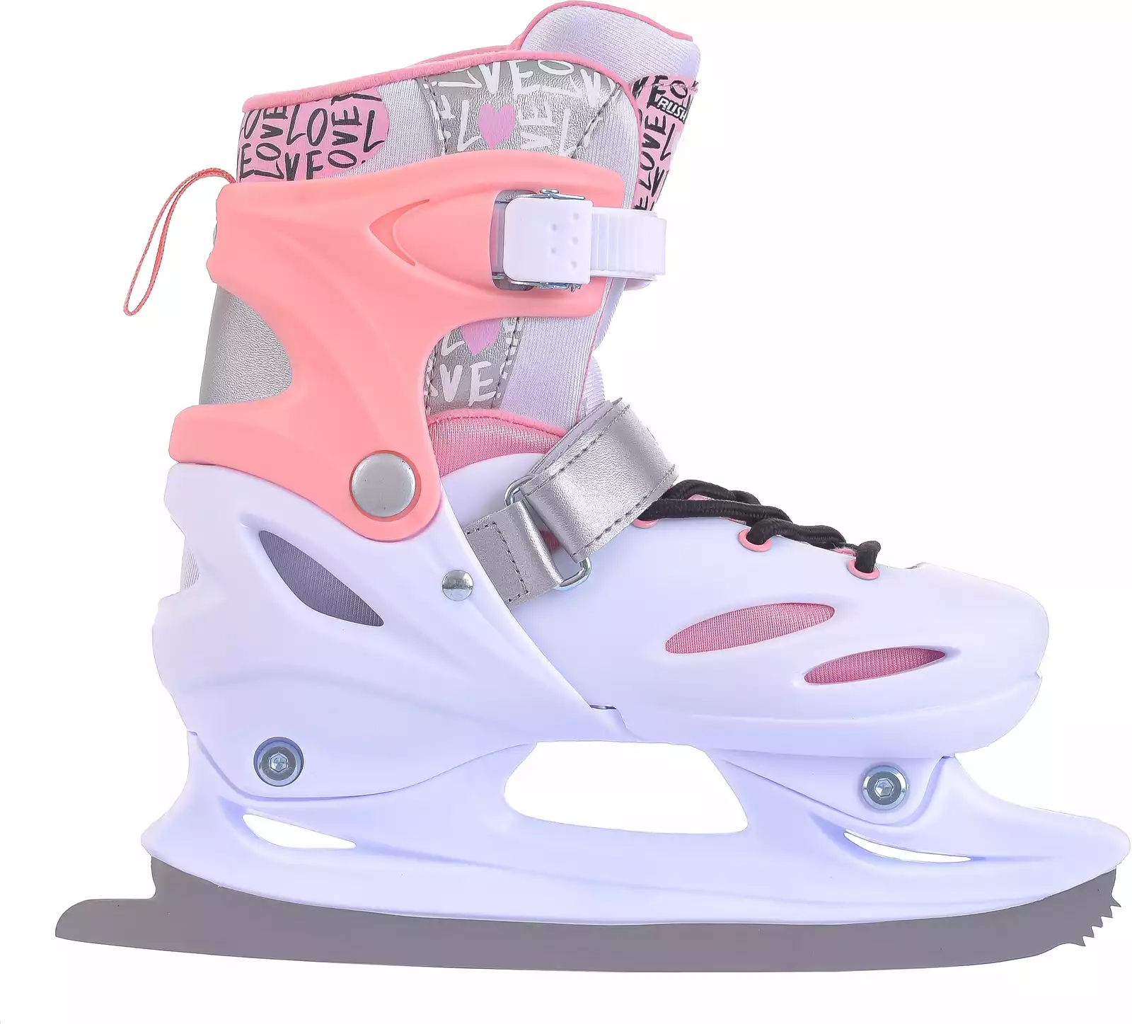 Раздвижные коньки RUSH ACTION подходят для любительского катания . Длина стельки размер 27-30 с 15,5 до 17,5 см, размер 30-33 с 18 до 20 см, размер 34-37 с 21 до 23 см. Раздвижная конструкция очень популярна, так как отпадает потребность каждый год приобретать новые коньки вслед за ростом ноги ребенка. Ботинок из жесткого полиуретана. Пластиковый каркас обеспечивает максимальную поддержку ноги ребенка. Внутренняя подкладка сделана из синтетического текстиля, позволяющего сохранить комфорт и тепло во время катания. Надежный механизм застегивания состоит из клипсы с фиксатором и шнуровки. Лезвие из нержавеющей стали со специальным защитным напылением обеспечит наилучшее скольжение конька по льду. Лезвия имеют заводскую заточку. Максимально допустимая нагрузка 80 кг.