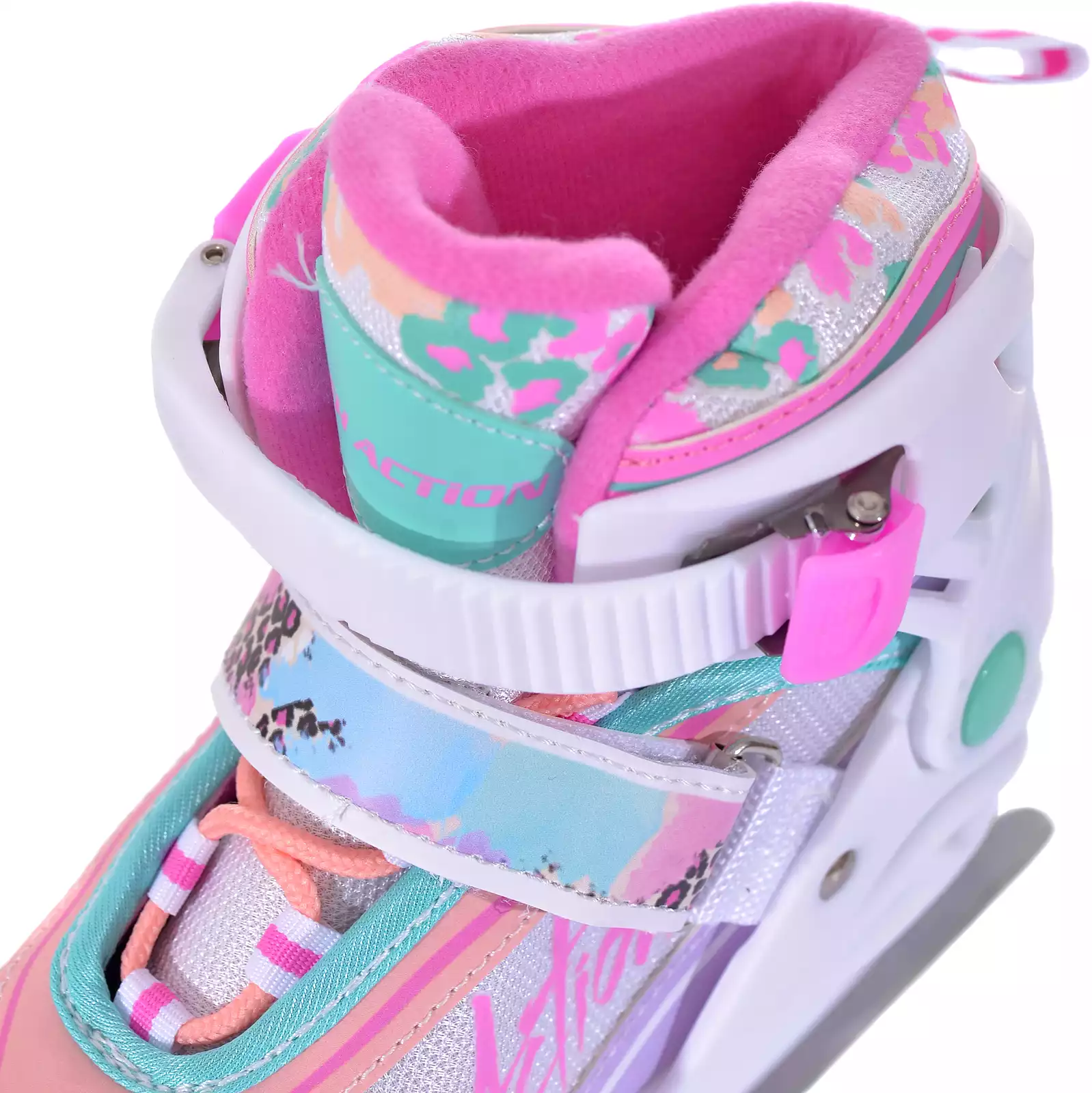 Раздвижные коньки RUSH ACTION подходят для любительского катания и представляют собой наглядный пример высокого качества. Отличительная особенность данной модели коньков - раздвижная конструкция. Она очень популярна, так как отпадает потребность каждый год приобретать новые коньки вслед за ростом ноги ребенка. Удобный ботинок выполнен из искусственной кожи, синтетической ткани и армирован каркасом из жесткого полиуретана. Внутренняя подкладка и стелька сделаны из синтетического текстиля, позволяющего сохранить комфорт и тепло во время катания. Анатомический крой ботинка, жесткая подошва гарантируют плотную фиксацию ступни и оберегают от травм. Удобный и надежный механизм застегивания состоит из шнуровки, клипсы с фиксатором и липучки. Лезвие из нержавеющей стали со специальным защитным напылением обеспечит наилучшее скольжение конька по льду. Лезвия имеют заводскую заточку. Максимально допустимая нагрузка 80 кг.