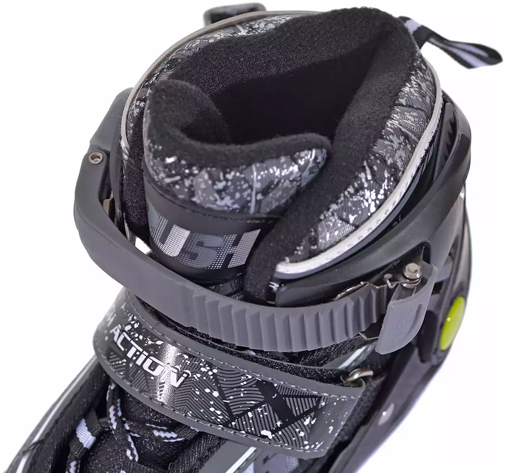 Раздвижные коньки RUSH ACTION подходят для любительского катания и представляют собой наглядный пример высокого качества. Отличительная особенность данной модели коньков - раздвижная конструкция. Она очень популярна, так как отпадает потребность каждый год приобретать новые коньки вслед за ростом ноги ребенка. Удобный ботинок выполнен из искусственной кожи, синтетической ткани и армирован каркасом из жесткого полиуретана. Внутренняя подкладка и стелька сделаны из синтетического текстиля, позволяющего сохранить комфорт и тепло во время катания. Анатомический крой ботинка, жесткая подошва гарантируют плотную фиксацию ступни и оберегают от травм. Удобный и надежный механизм застегивания состоит из шнуровки, клипсы с фиксатором и липучки. Лезвие из нержавеющей стали со специальным защитным напылением обеспечит наилучшее скольжение конька по льду. Лезвия имеют заводскую заточку. Максимально допустимая нагрузка 80 кг.