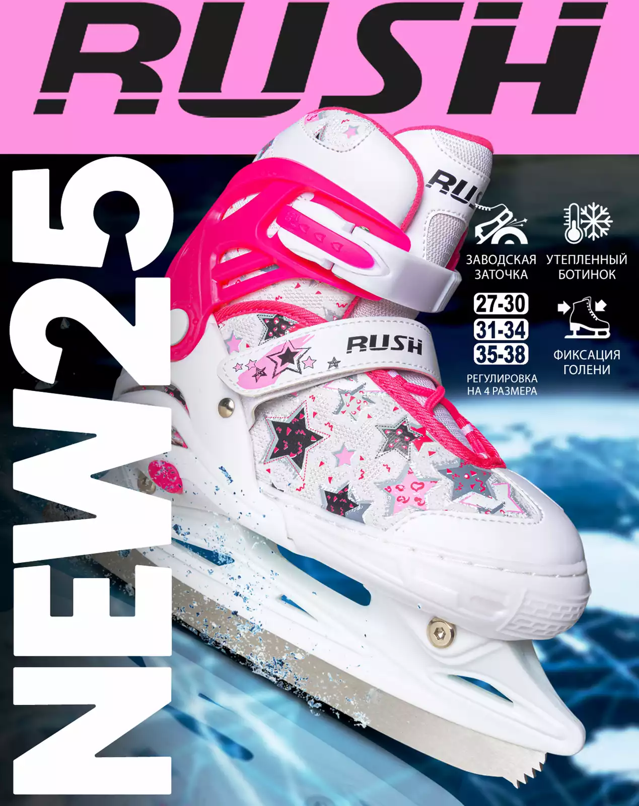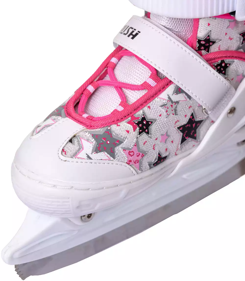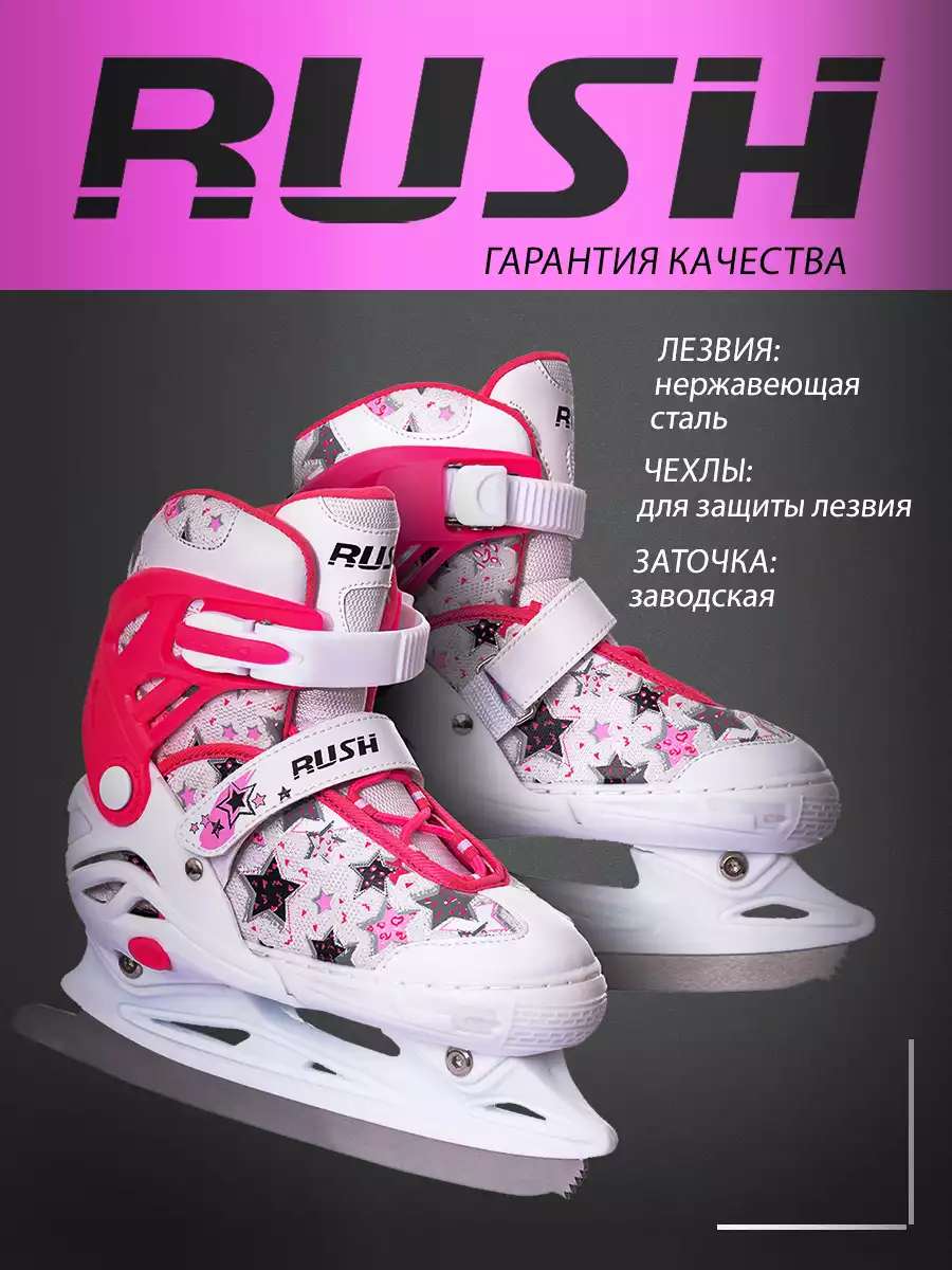 Раздвижные коньки RUSH ACTION подходят для любительского катания и представляют собой наглядный пример высокого качества. Отличительная особенность данной модели коньков - раздвижная конструкция. Она очень популярна, так как отпадает потребность каждый год приобретать новые коньки вслед за ростом ноги ребенка. Удобный ботинок выполнен из искусственной кожи, синтетической ткани и армирован каркасом из жесткого полиуретана. Внутренняя подкладка и стелька сделаны из синтетического текстиля, позволяющего сохранить комфорт и тепло во время катания. Анатомический крой ботинка, жесткая подошва гарантируют плотную фиксацию ступни и оберегают от травм. Удобный и надежный механизм застегивания состоит из шнуровки, клипсы с фиксатором и липучки. Лезвие из нержавеющей стали со специальным защитным напылением обеспечит наилучшее скольжение конька по льду. Лезвия имеют заводскую заточку. Максимально допустимая нагрузка 80 кг.
