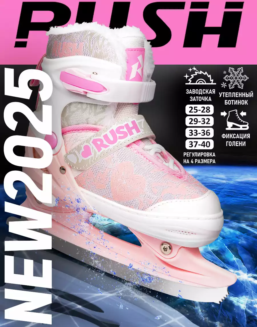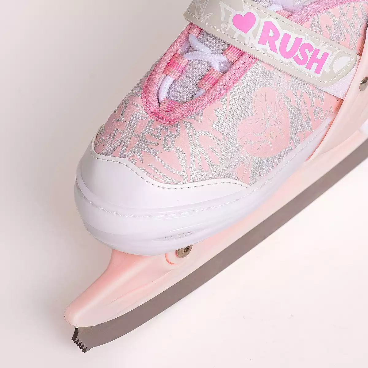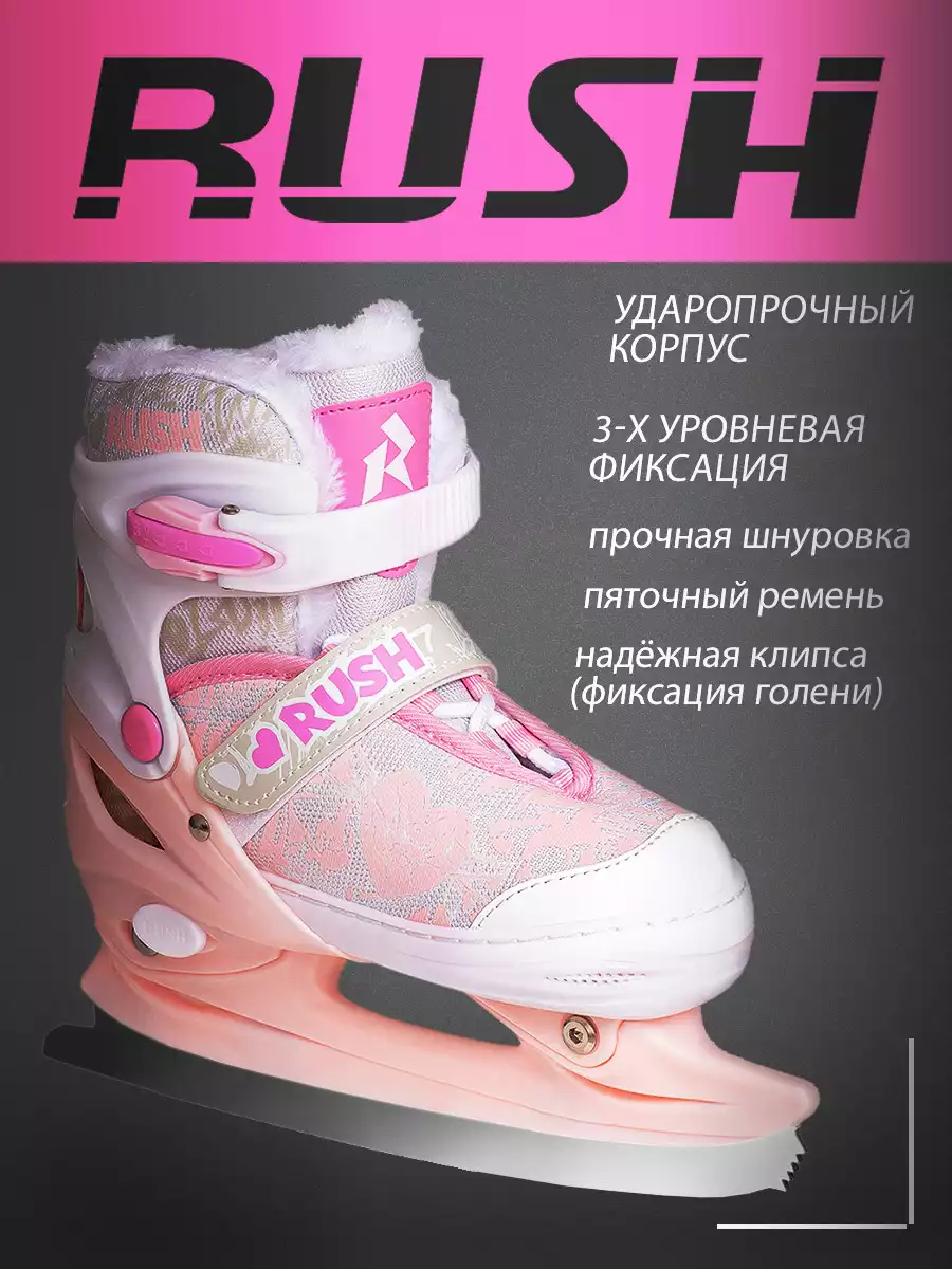 Раздвижные коньки RUSH ACTION подходят для любительского катания и представляют собой наглядный пример высокого качества. Отличительная особенность данной модели коньков - раздвижная конструкция. Она очень популярна, так как отпадает потребность каждый год приобретать новые коньки вслед за ростом ноги ребенка. Удобный ботинок выполнен из искусственной кожи, синтетической ткани и армирован каркасом из жесткого полиуретана. Внутренняя подкладка и стелька сделаны из искусственного меха, позволяющего сохранить комфорт и тепло во время катания. Анатомический крой ботинка, жесткая подошва гарантируют плотную фиксацию ступни и оберегают от травм. Удобный и надежный механизм застегивания состоит из шнуровки, клипсы с фиксатором и липучки. Лезвие из нержавеющей стали со специальным защитным напылением обеспечит наилучшее скольжение конька по льду. Лезвия имеют заводскую заточку. Максимально допустимая нагрузка 80 кг.