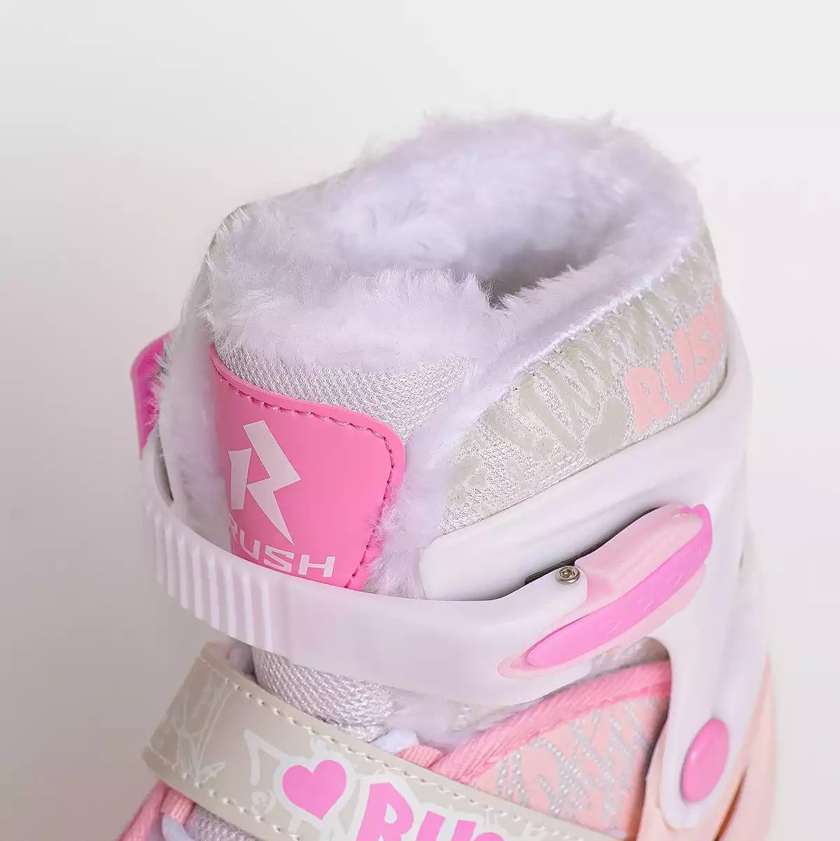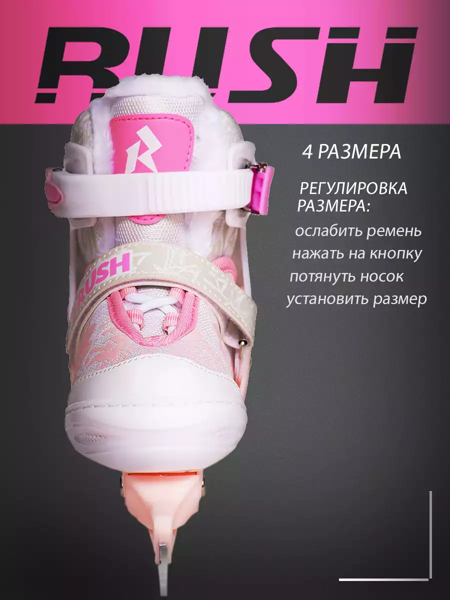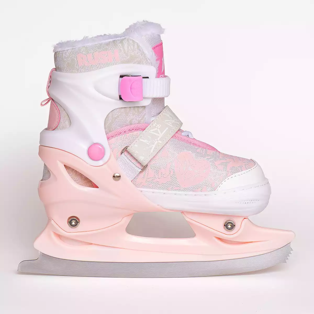 Раздвижные коньки RUSH ACTION подходят для любительского катания и представляют собой наглядный пример высокого качества. Отличительная особенность данной модели коньков - раздвижная конструкция. Она очень популярна, так как отпадает потребность каждый год приобретать новые коньки вслед за ростом ноги ребенка. Удобный ботинок выполнен из искусственной кожи, синтетической ткани и армирован каркасом из жесткого полиуретана. Внутренняя подкладка и стелька сделаны из искусственного меха, позволяющего сохранить комфорт и тепло во время катания. Анатомический крой ботинка, жесткая подошва гарантируют плотную фиксацию ступни и оберегают от травм. Удобный и надежный механизм застегивания состоит из шнуровки, клипсы с фиксатором и липучки. Лезвие из нержавеющей стали со специальным защитным напылением обеспечит наилучшее скольжение конька по льду. Лезвия имеют заводскую заточку. Максимально допустимая нагрузка 80 кг.